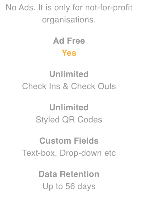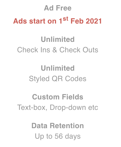 The free subscription offers you all basic features you need for Covid check-in. Features such as multiple locations and customisable visitor fields offer you great flexibility in creating visitor forms.