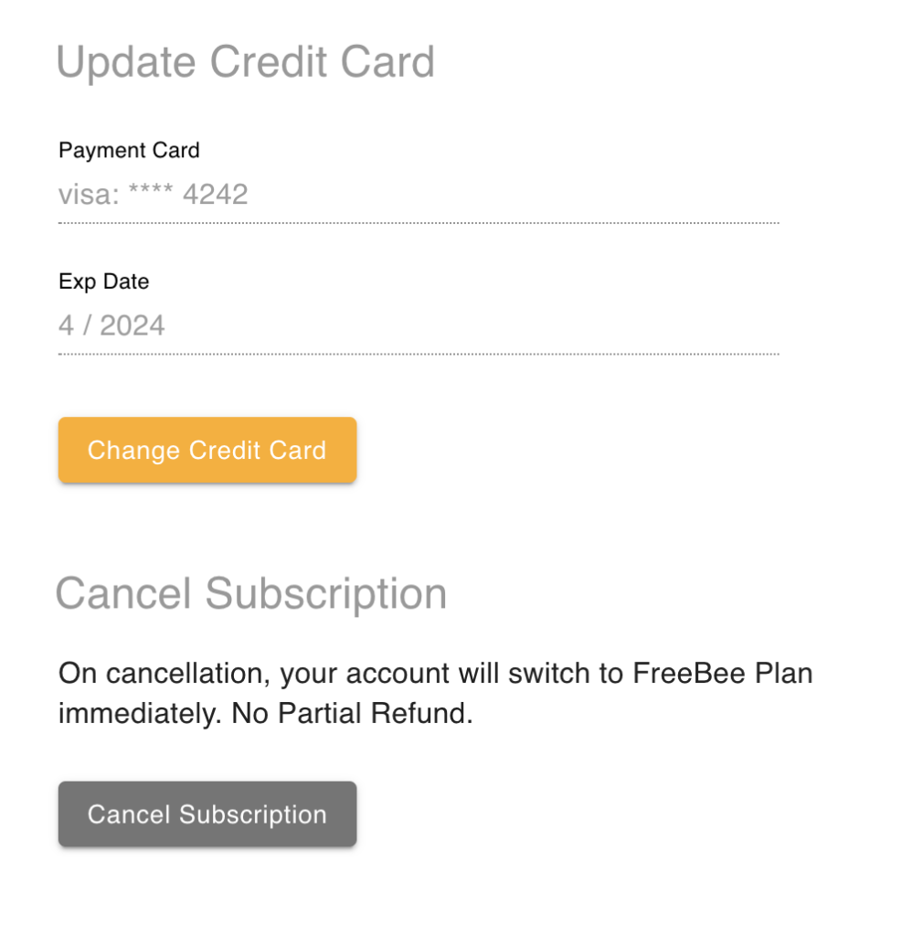Navigate to the Subscription tab on the management dashboard, choose Basic Plan and pay with a credit card.