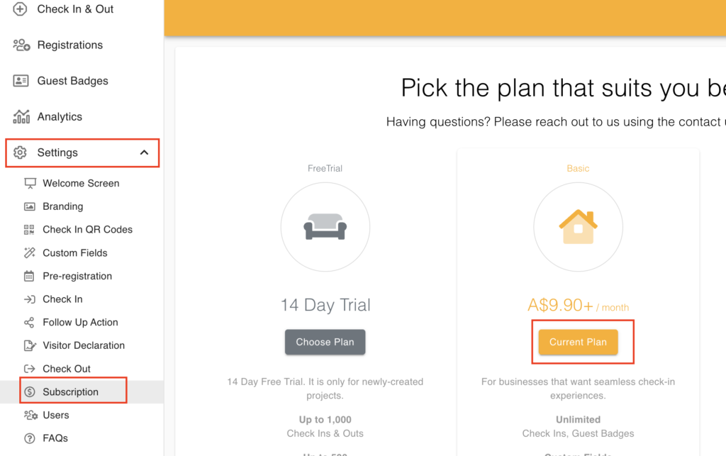 Go to Settings > Subscription > Current Plan.
