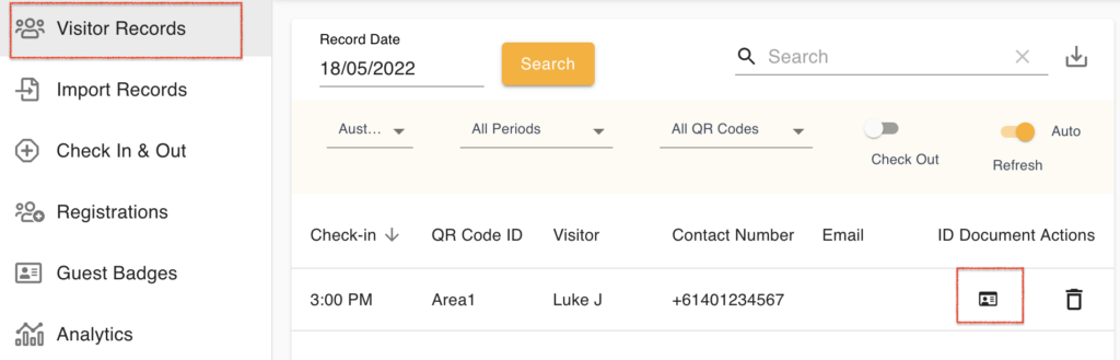 The document and its data can be accessed from the Visitor Records screen.