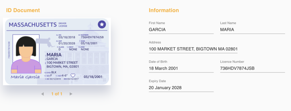 Information from the ID document is automatically extracted and made available for business owners to review and use.